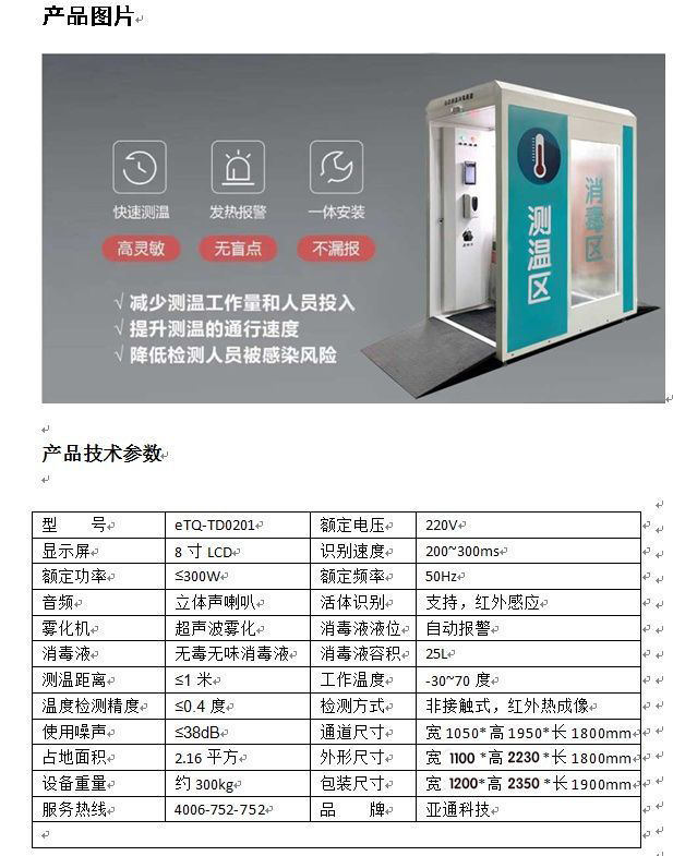 产品名称:智能人脸识别测温防疫消毒一体化通道
