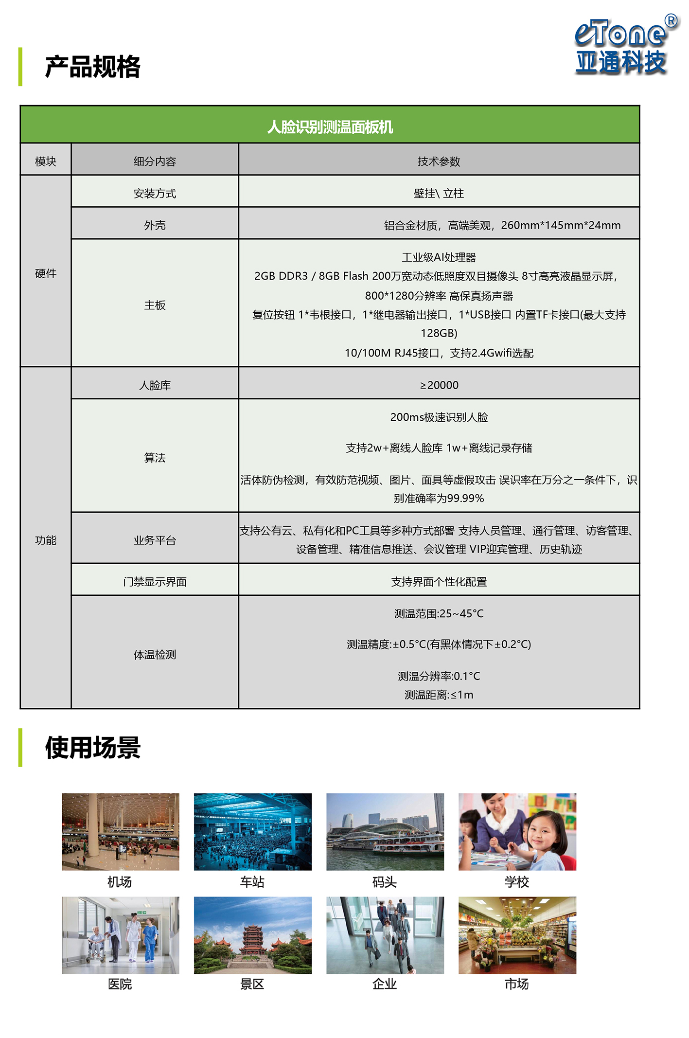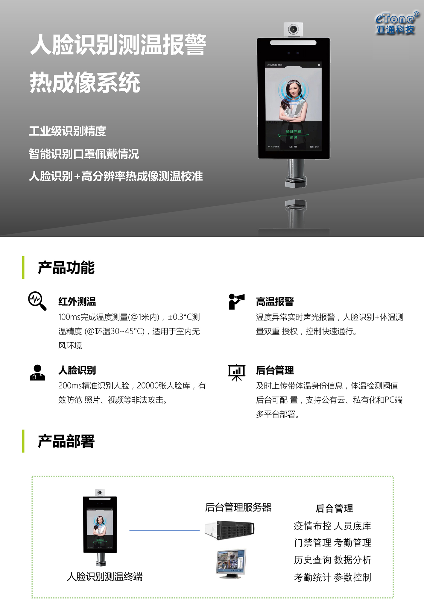 具有测温功能:温度异常语音提示、未戴口罩语音提示