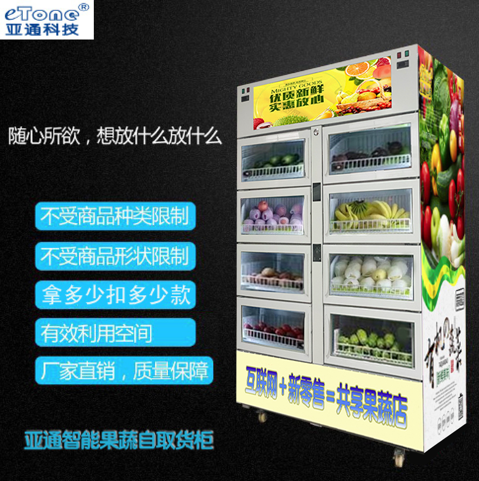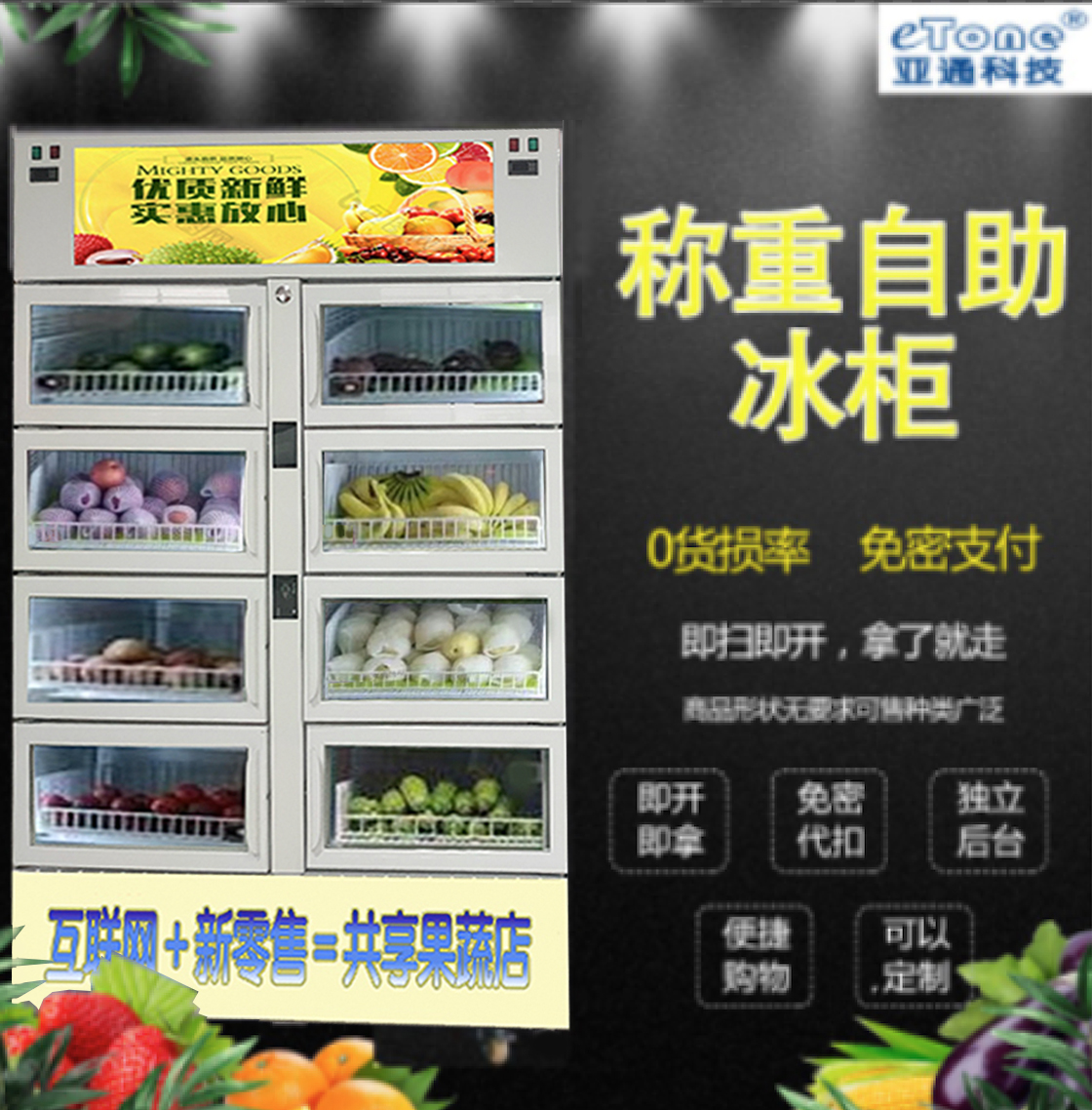 共享果蔬柜成本高吗?亚通科技采用8门风冷秤重共享柜,购物更方便、管理更便捷、出租自营销售盈利更高